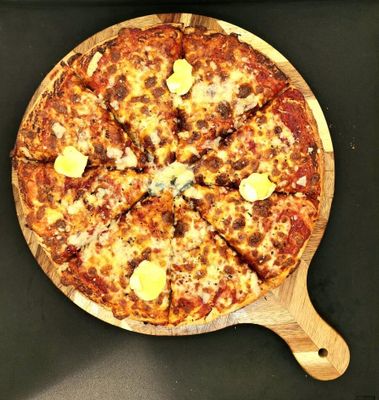 Tomato Sauce (BASE), Blue Cheese, Brie Cheese, Mozzarella Cheese, Parmesan Cheese and Tasty Cheese